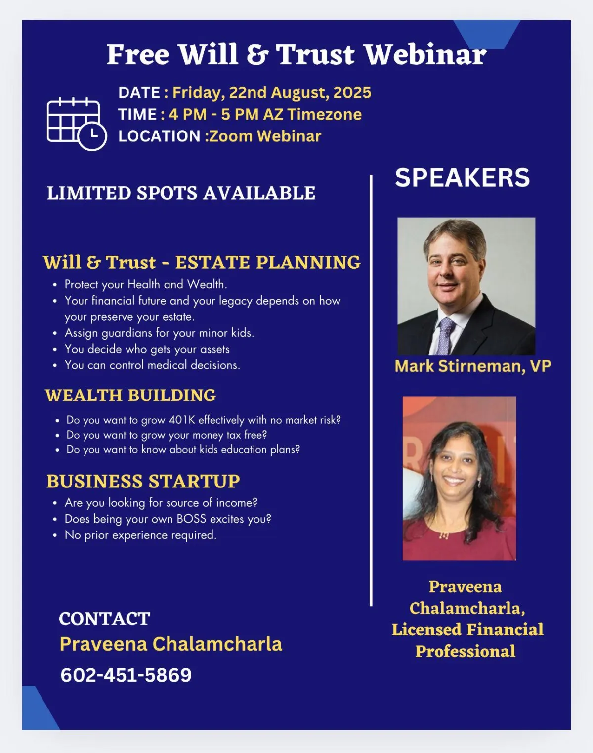 Come join us for this FREE webinar to learn more about how to secure your family by leveraging simple estate planning tips.